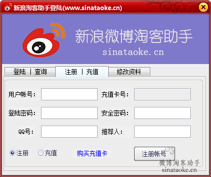 打开主程序,主程序文件名是(sinatk.exe),点击注册充值【如下图:】